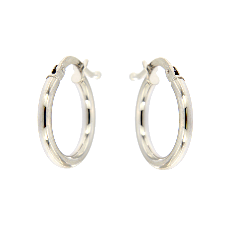 Orecchini a cerchio in oro bianco 18kt diametro 1cm, larghezza 0.2cm .Chiusura a clips