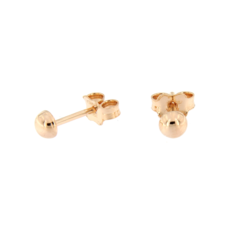 Orecchini a pallina a lobo in oro rosa 18kt a pallina, diametro 0.3cm .Chiusura a farfallina
