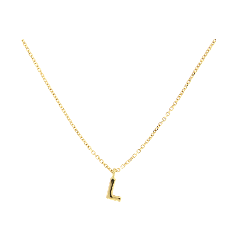 Collana a catena in oro giallo 18kt con ciondolo lettera L 0.5×0.5cm. Chiusura a moschettone.