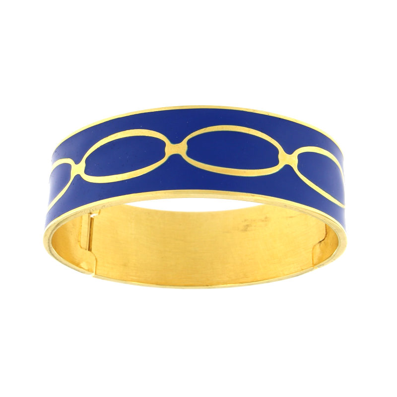 Bracciale rigido blu placcato oro 24kt 2cm diametro 6.5cm è caratterizzato da un disegno dorato al centro ed è smaltato di blubra