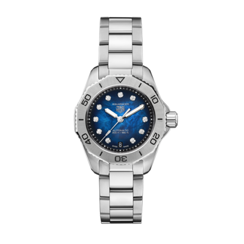 Grazie alla sua struttura robusta e all’impareggiabile audacia che caratterizza il suo design, questo versatile TAG Heuer Aquaracer è un invito a spingersi oltre ogni limite. Gli 11 diamanti VS (0,107 carati) rendono questo orologio perfetto per raccogliere ogni sfida.