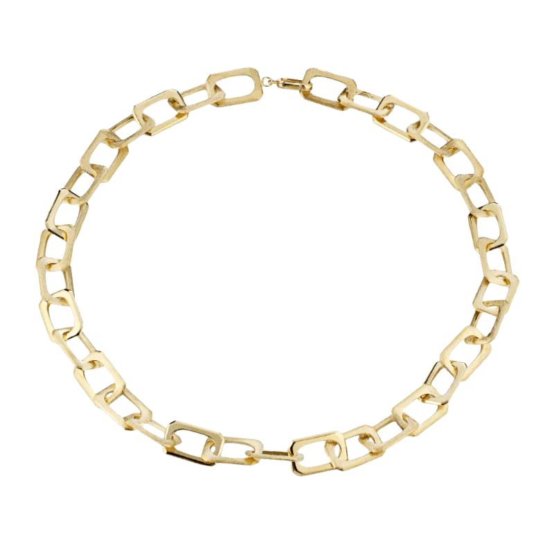 Girocollo dorato Marcello Pane in argento 925 placcato oro giallo con maglie squadrate satinate e lucide. Chiusura a moschettone..