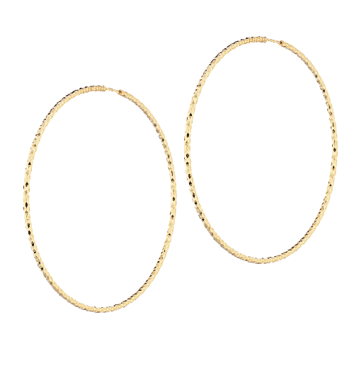 Orecchini a cerchio in argento 925, color oro, della collezione Lux di Marcello Pane.