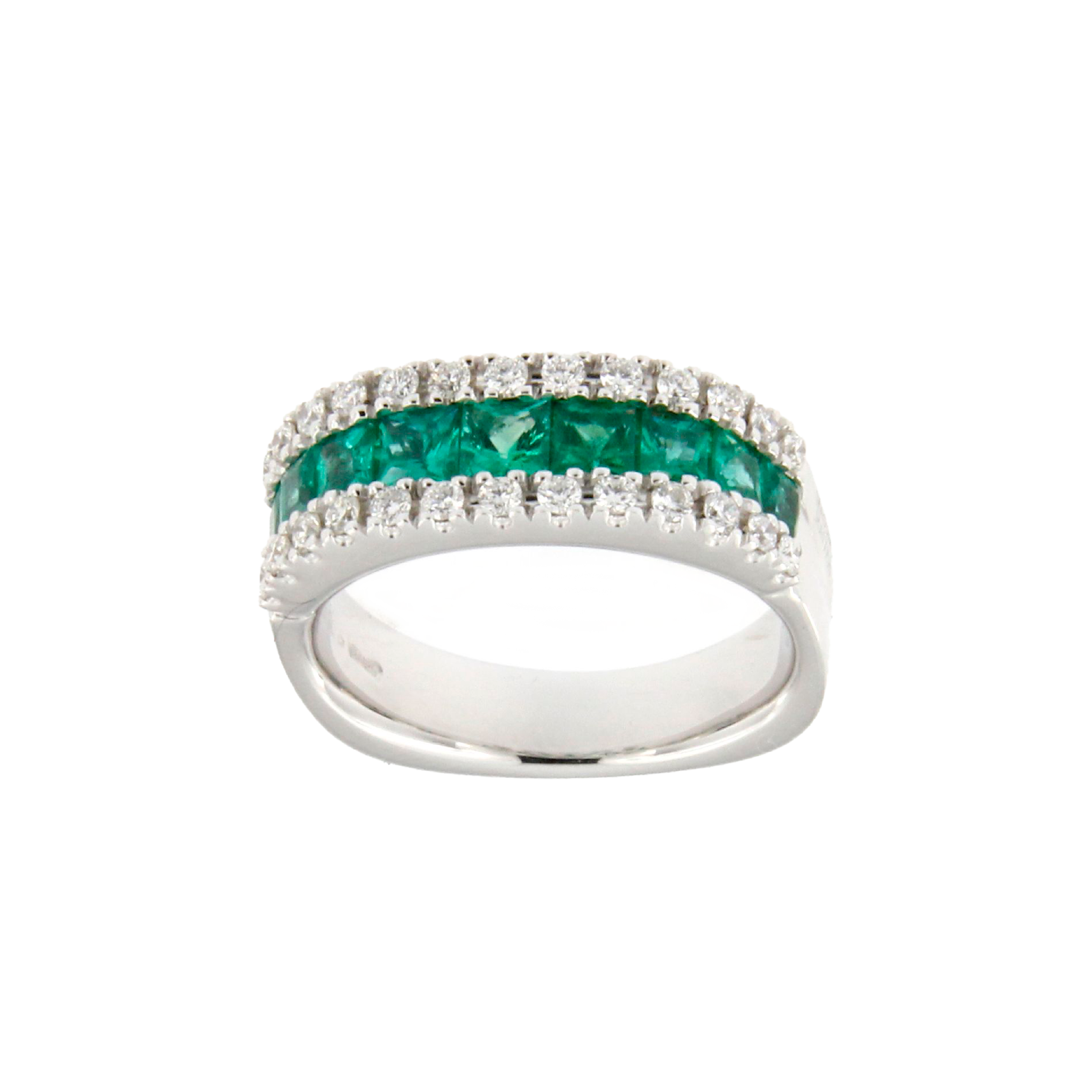Anello con brillanti e smeraldi in oro bianco 18kt.