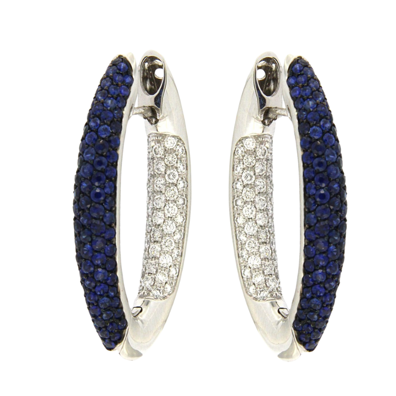 Orecchini in oro bianco 18kt Massimo Raiteri con diamanti taglio brillante ct. 1,74 – colore G – purezza VS e zaffiri ct. 4,72. Gr. 20,75.