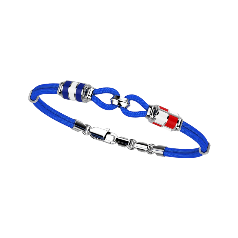 Bracciale in kevlar azzurro con asola e bandiere nautiche in argento EXB524-AZ.