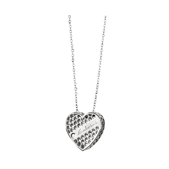 Catena in oro bianco 9kt con ciondolo a cuore traforato con scritta Salvini e diamante taglio brillante 0,01ct.