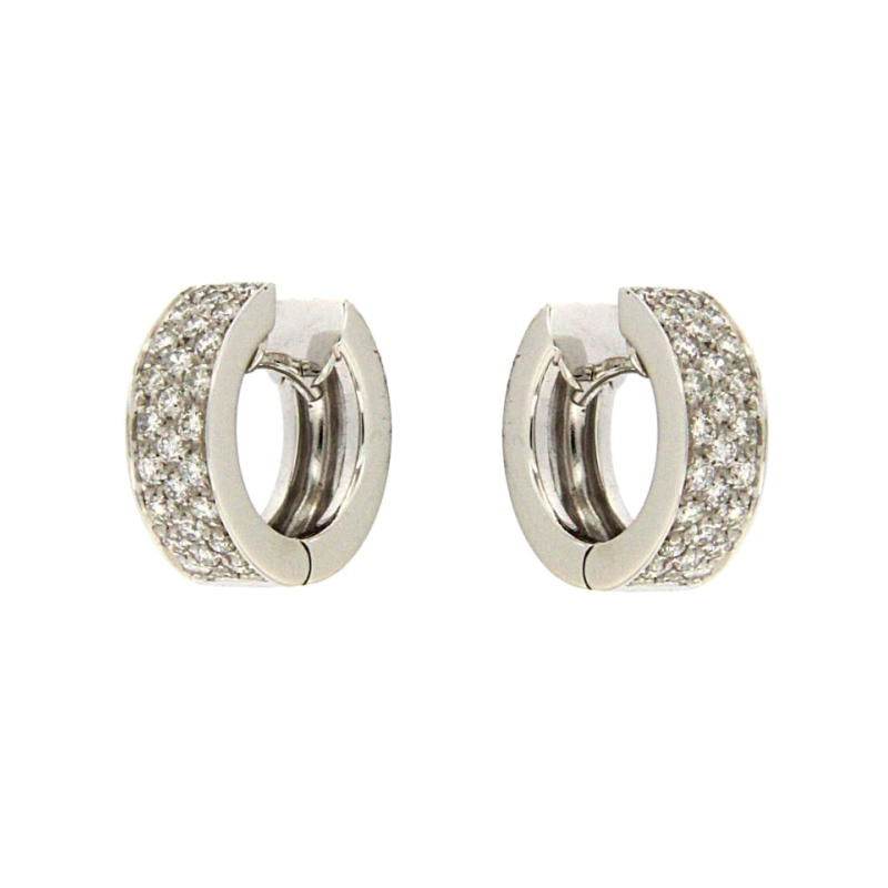 Orecchini a cerchio in oro bianco 18kt con diamanti taglio brillante ct. 0,69.Chiusura a clips.