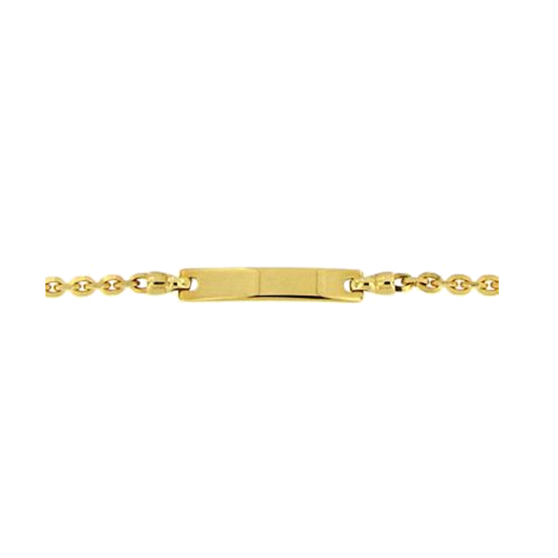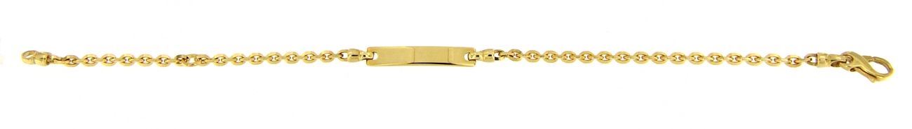 Bracciale in oro giallo 18kt con targhetta 2cm, Chiusura a moschettone con misura regolabile a 13 cm o 16 cm