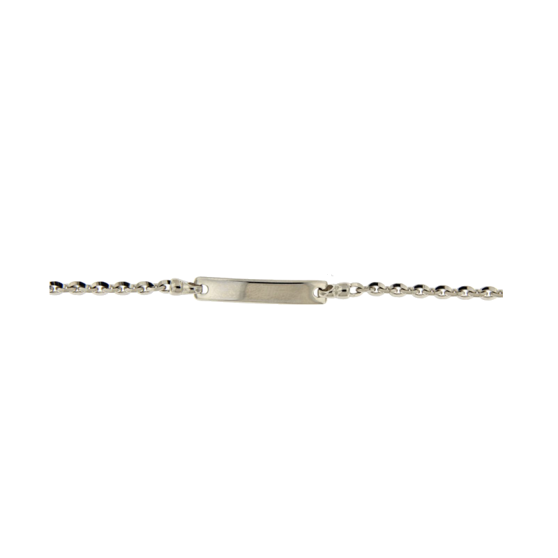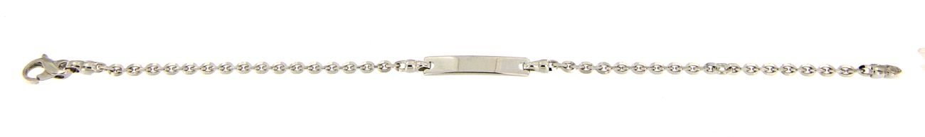Bracciale in oro bianco 18kt con targhetta 2cm, Chiusura a moschettone con misura regolabile a 13 cm o 16cm