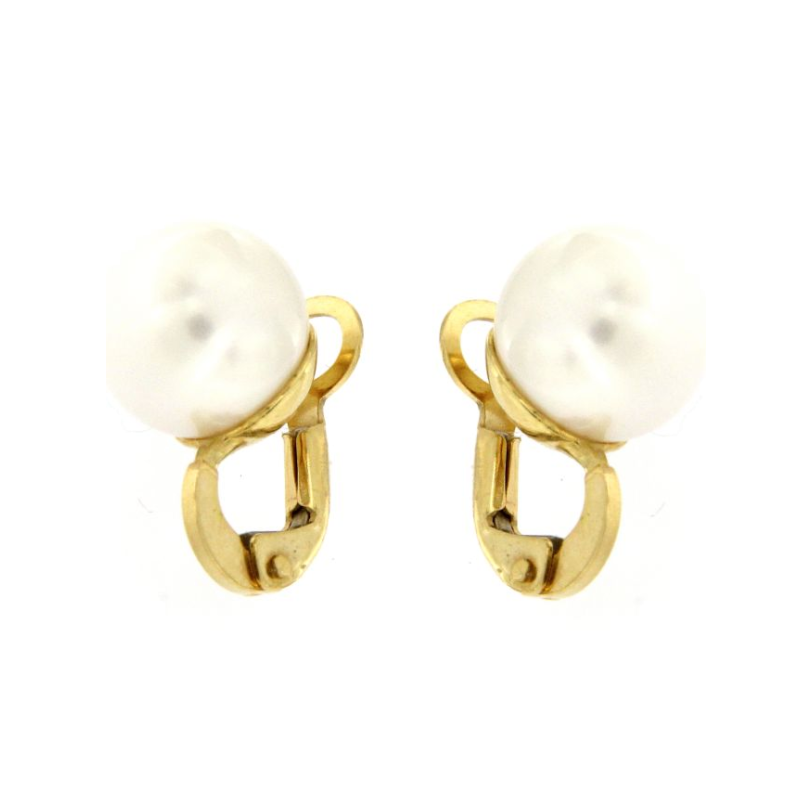 Orecchini di perle in oro giallo 18kt con perla diametro 0.7 cm. Chiusura a clips senza buco