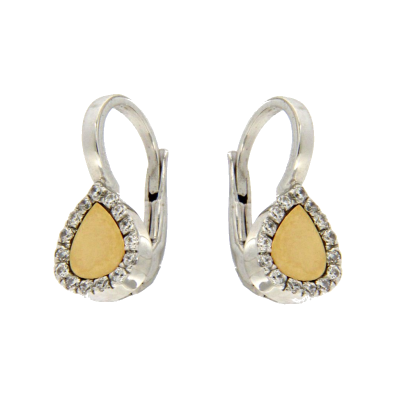 Orecchini pendenti a monachella in oro bianco e oro giallo 18kt lunghezza 1.5cm.