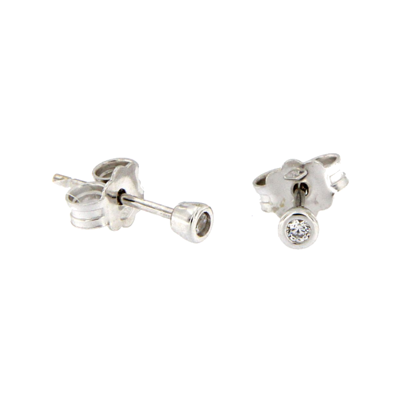 Orecchini punto luce zirconi in oro bianco 18kt con zirconi di grandezza come se fosse ct 0.10. Chiusura a farfallina.