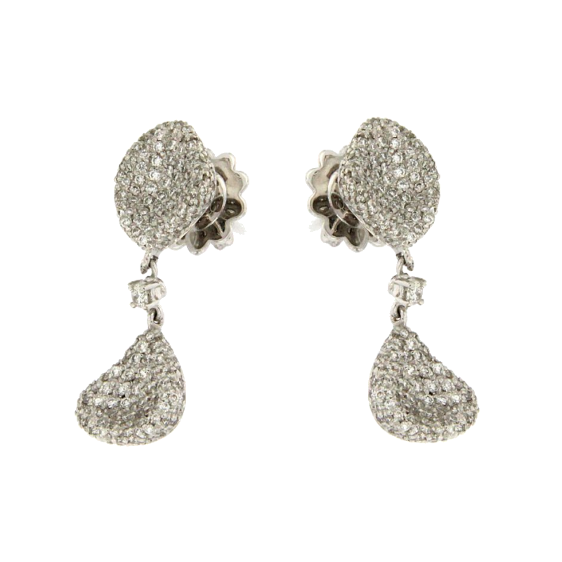 Orecchini pendenti in oro bianco 18kt con pavè di diamanti taglio brillante ct. 1,47. Lunghezza totale 3cm. Chiusura a farfallina.