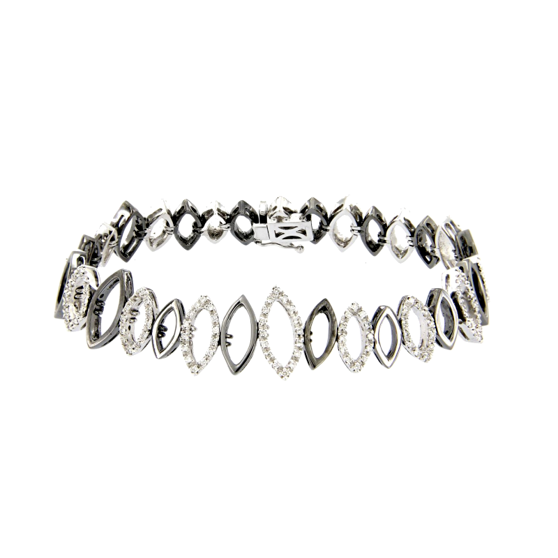 Bracciale semirigido in oro bianco 18kt ed oro brunito con diamanti taglio brillante ct.1.04.